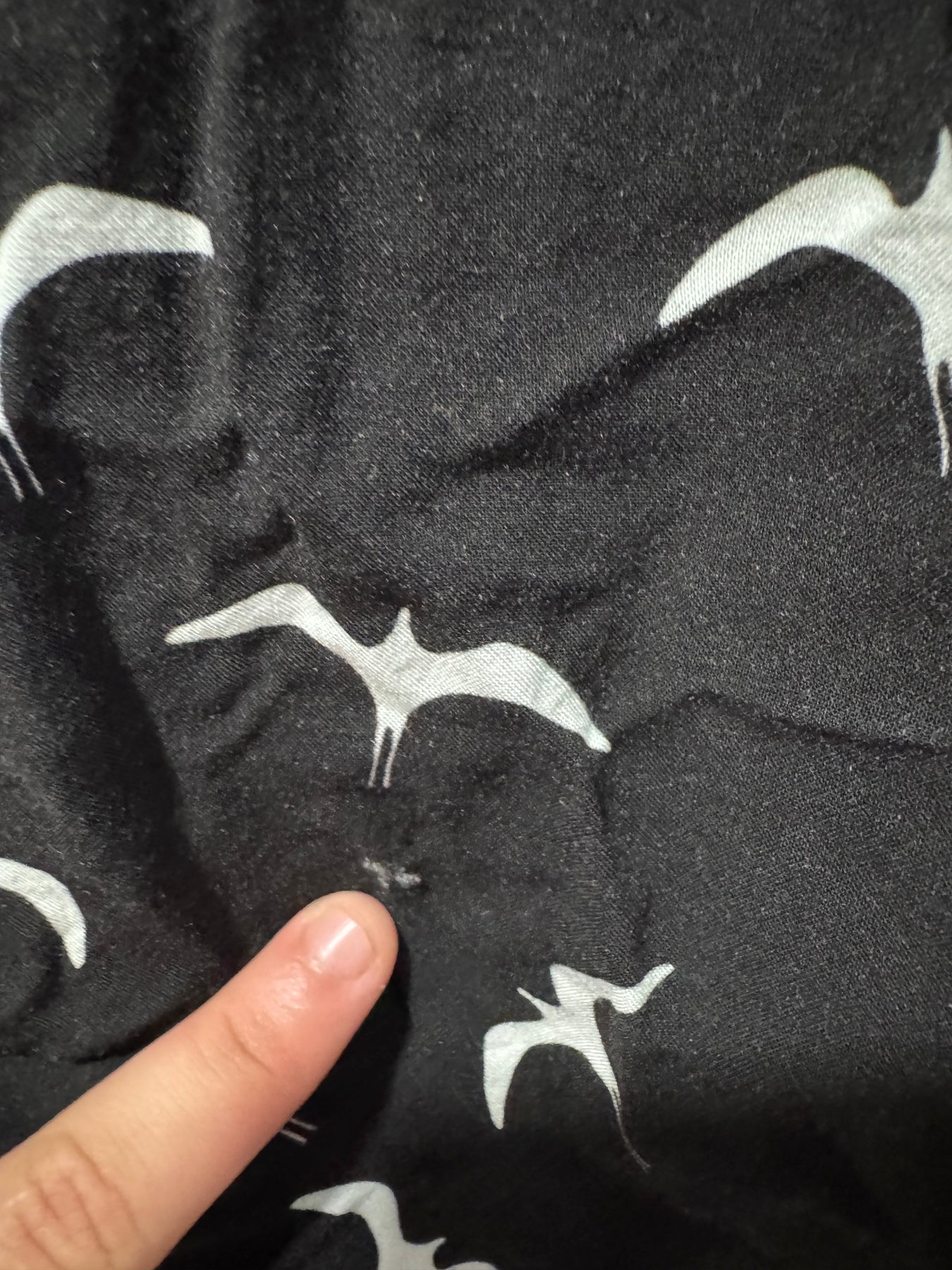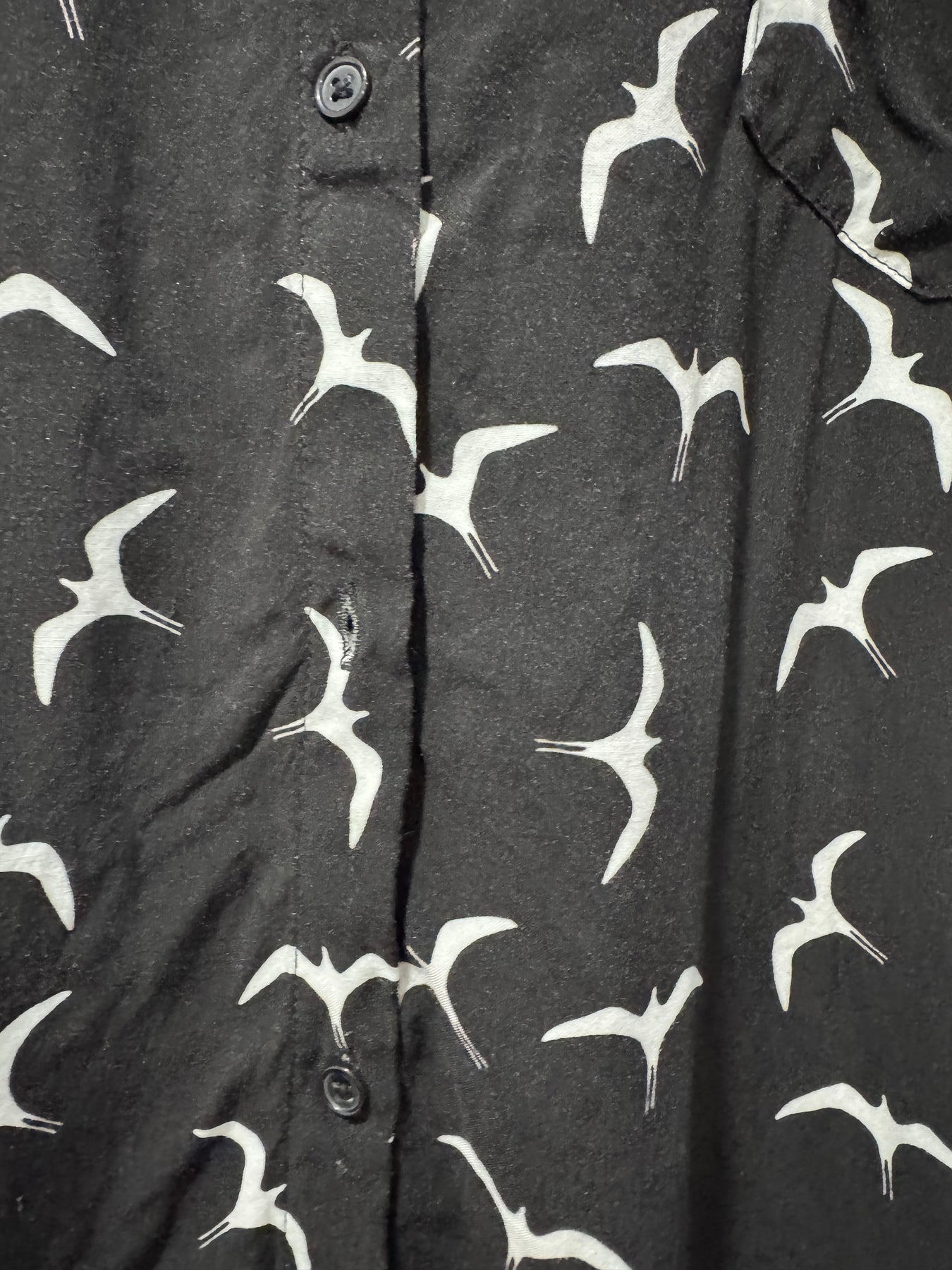 Large Iwa Bird top with a small snag on the bottom back of the shirt. Also missing a button, however there is an extra button on the inside tag of the shirt.